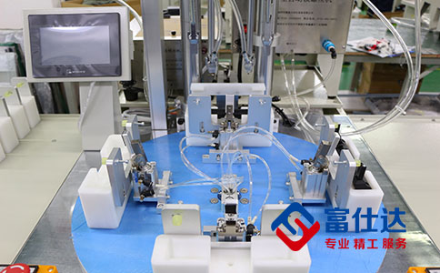 結合產品特點和客戶的需求,這款設備最大的優勢是可以同時鎖付兩種螺絲,采用2個供料機分別裝置2種不同的螺絲,在轉臺上面設計四個治具,可固定4件產品;比起很多工廠大量招聘工人來完成鎖付,這臺拉桿箱把手自動擰螺絲機設備效率更高!鎖付的產品質量更有保障!